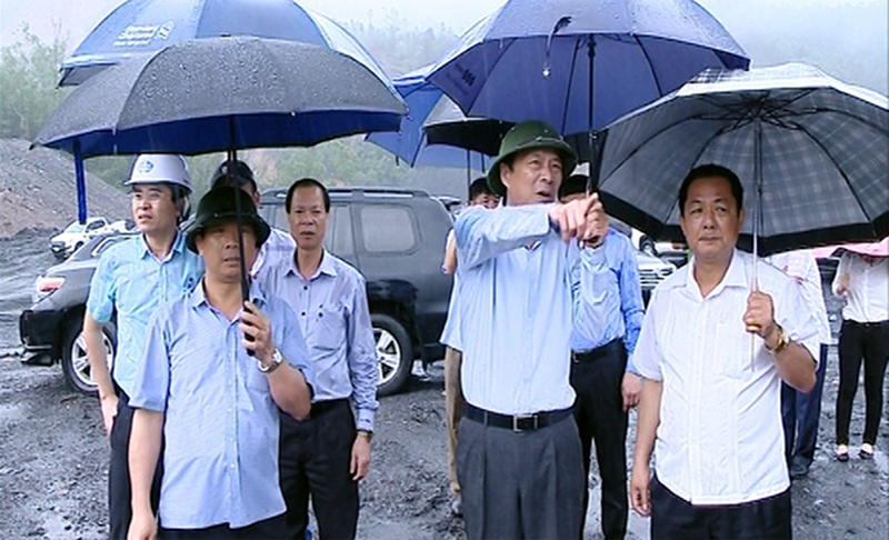 Bí thư Tỉnh ủy Nguyễn Văn Đọc thực tế hiện trường, nơi cử tri phát giác có tình trạng lợi dụng trùng tu xây dựng công trình di tích để khai thác than trái phép.